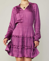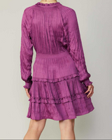 LONG-SLEEVE WRINKLED MINI DRESS WITH SPLIT NECK - MULBERRY