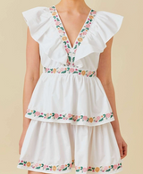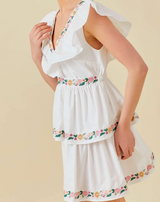 Flower Embroidery Ruffle Sleeve Mini Dress - White