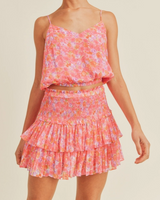 Shanae Printed Floral Bubble V-Neck Cami - Hot Pink Floral