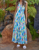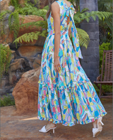 ABSTRACT PRINT DEEP V-NECK WITH SASH TIE ON THE BACK MAXI DRESS