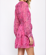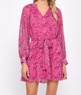 ANIMAL PRINT WITH LUREX CHIFFON TIE WAIST DRESS