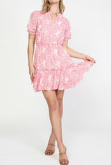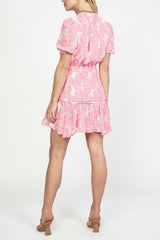 HALF SLEEVE MINI V NECK WITH ELASTICIZED WAIST AND TIERED SKIRT