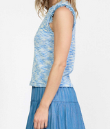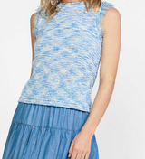 SLEEVELESS SPACE-DYED SWEATER WITH CONTRAST LACE TRIM - BLUE