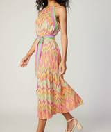SLEEVELESS HALTER DRESS WITH SPLIT NECK - ORANGE MLT